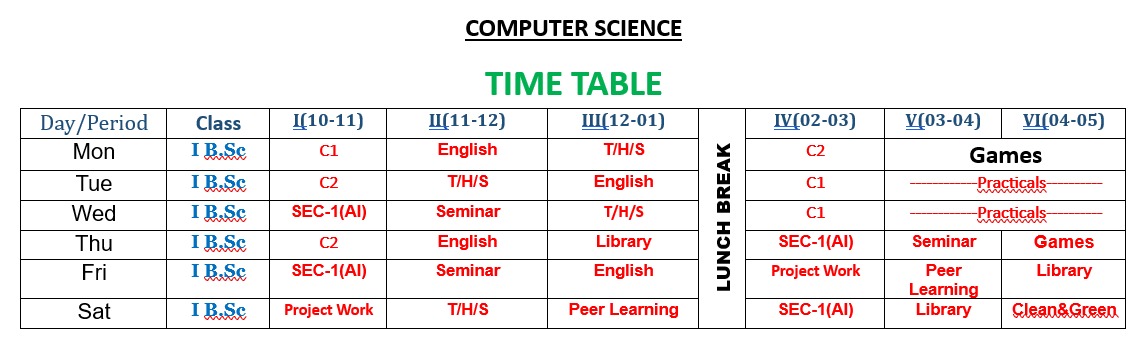 Semester wise Time Table